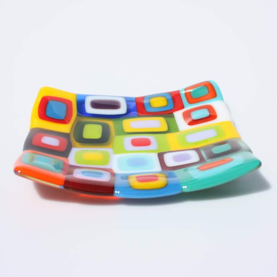 I started making fused glass as a hobby with a tiny kiln in the kitchen that was bought as a Christmas present. I fell in love with the process of designing and making glass, experimenting with lots of different ideas. After listing a few things on Etsy I finally invested in a bigger kiln and installed it in a shed at the end of the garden at our house in the Cotswolds.