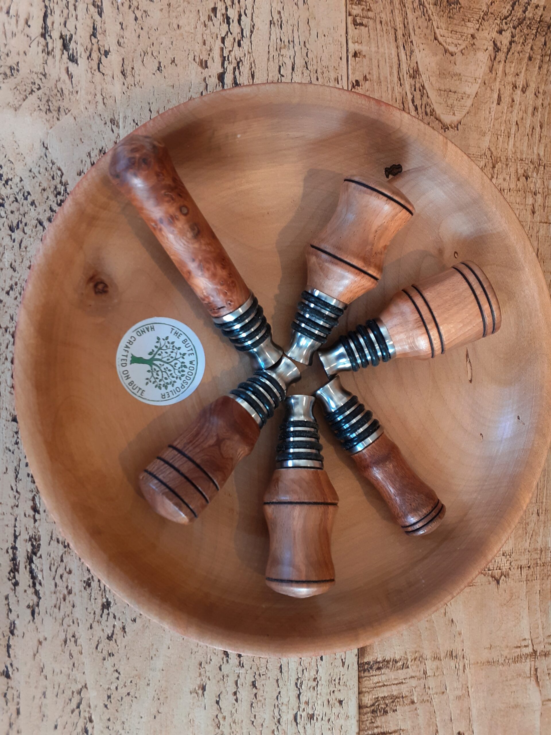 Each stopper is unique and made from sustainable Scottish hardwood.