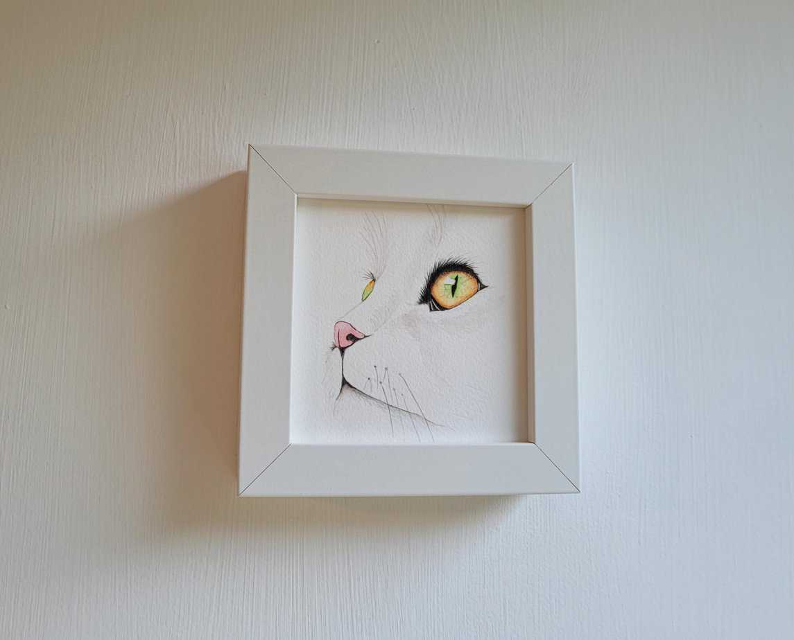 Original Watercolour Painting – Cat mini framed