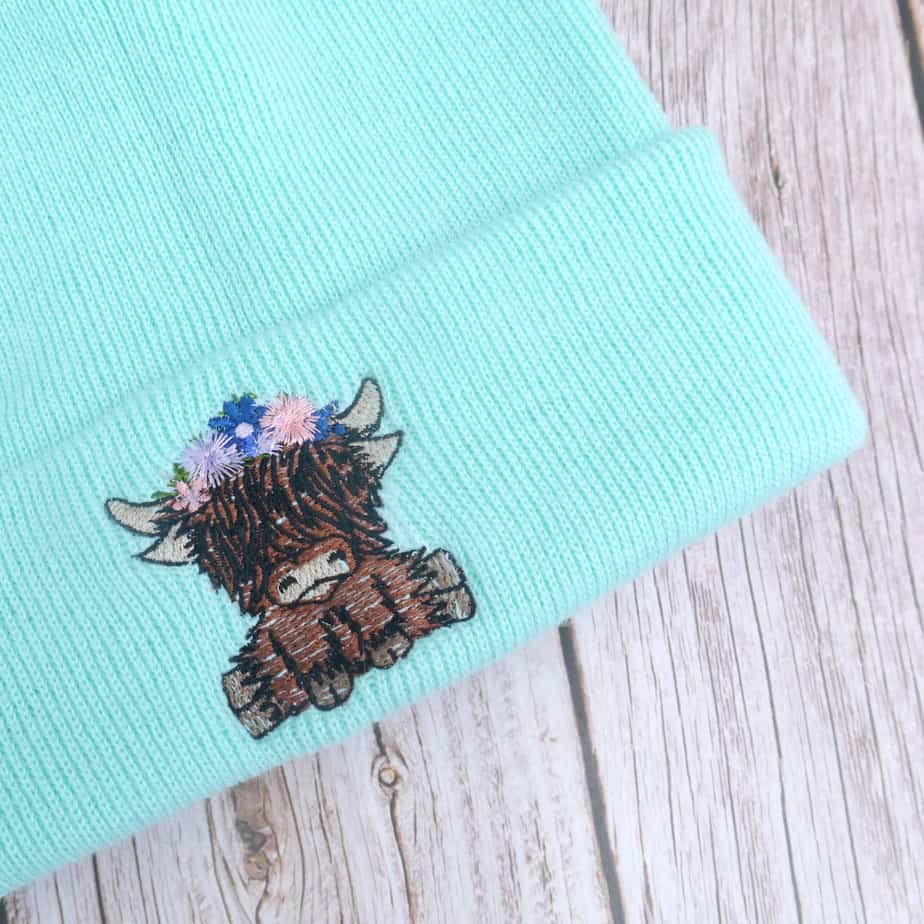 Cute Highland Cow Floral Headband Embroidered Beanie