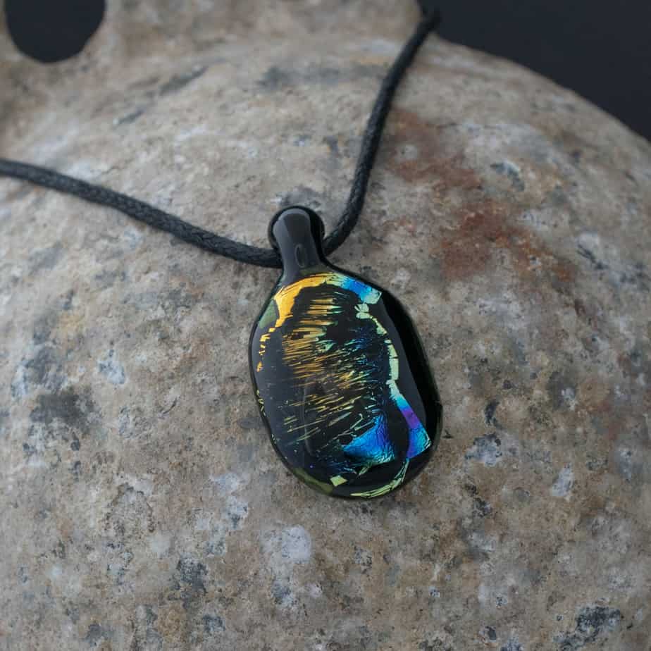 Please be aware: Dichroic glass will appear to have more than one colour especially if viewed at different angles and seen in different lighting. Photography and computer screens cannot truly capture the amazing sparkle and depth of colour that are visible in real life.