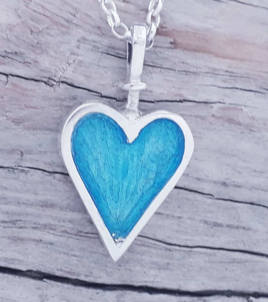 A perfect present for that special someone…. Sterling Silver and vitreous Enamel. Textured by hand to give the bright colour more reflection and lustre. A Beautiful Sea Blue! Hallmarked in Edinburgh and delivered in a gift box.