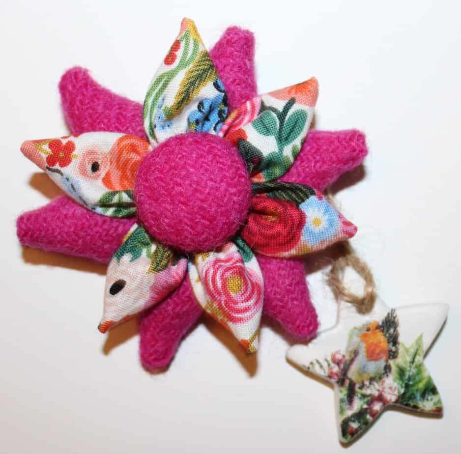 Harris Tweed and floral fabric corsage.