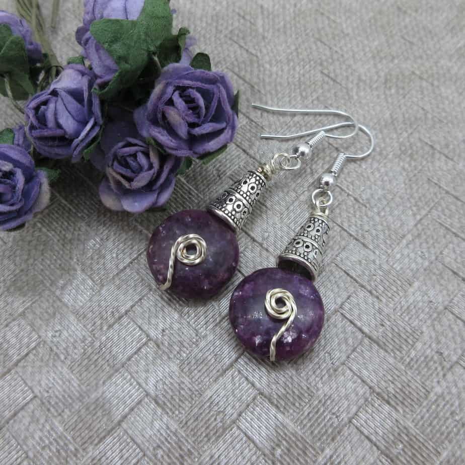 Purple, Lepidolite, Silver Plated, Earrings, Gift for Her