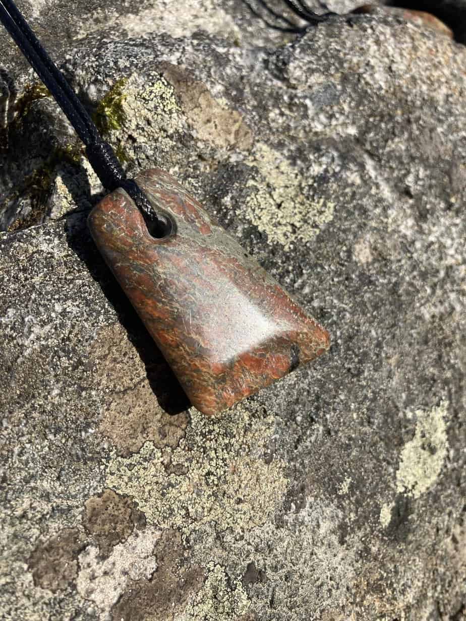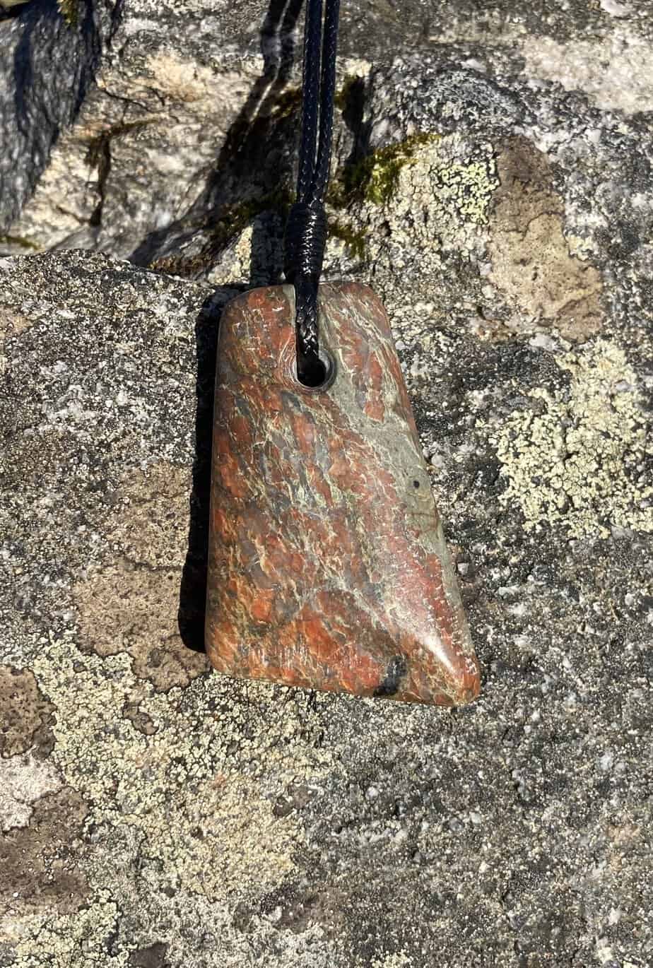 red and greenstone pendant
