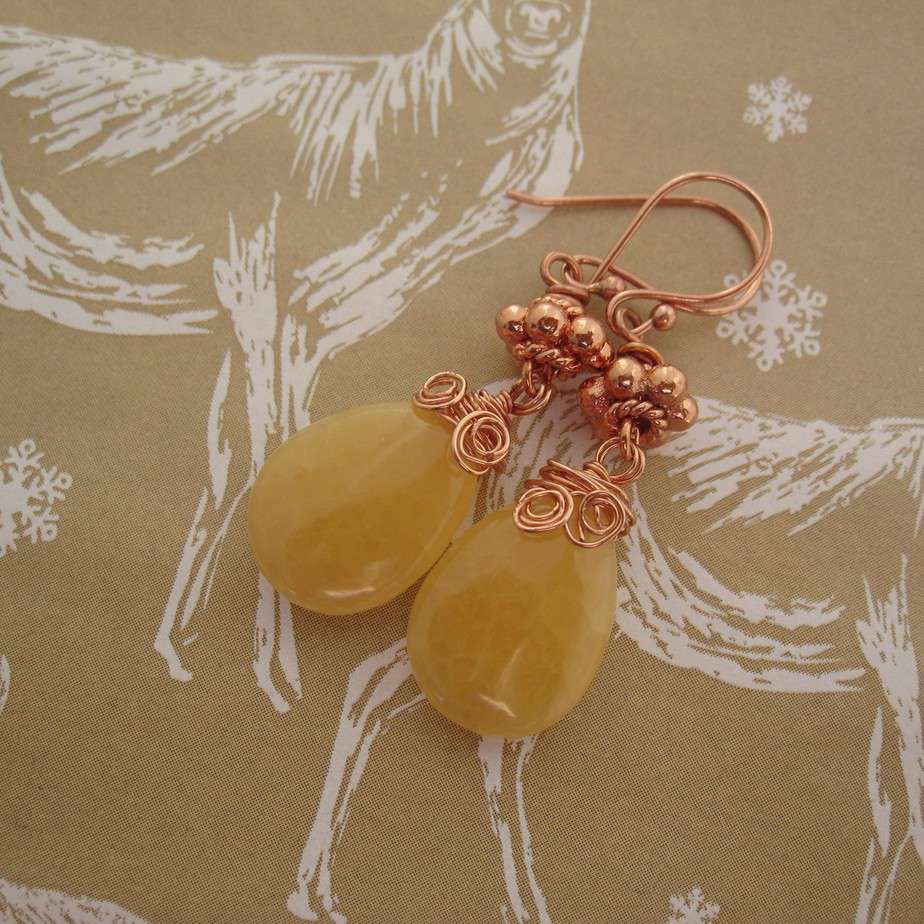 Sunshine Earrings with Honey Quartz, Rose Gold Plated