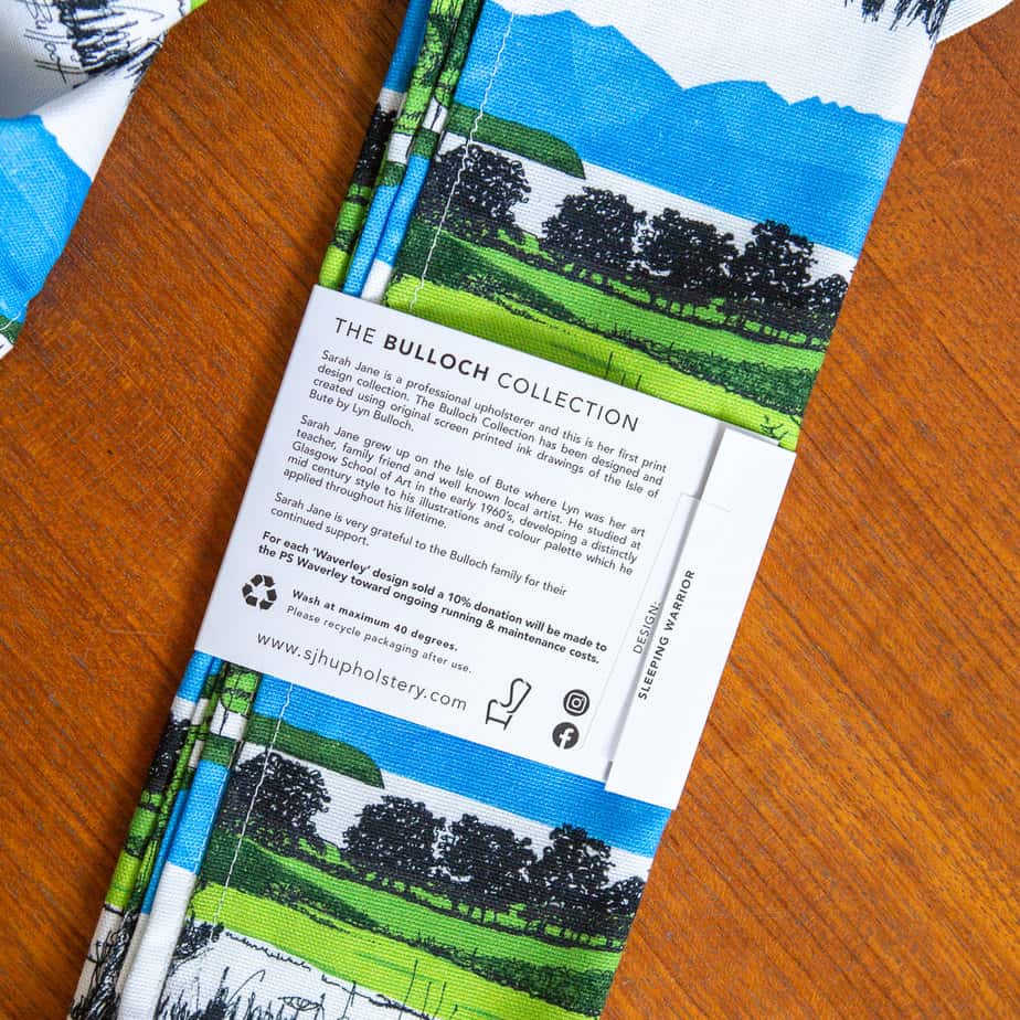 The Bulloch Collection is currently 3 unique designs. Each one features ink sketched landscapes of, or around, the Isle of Bute my childhood home where we’ve recently returned to.