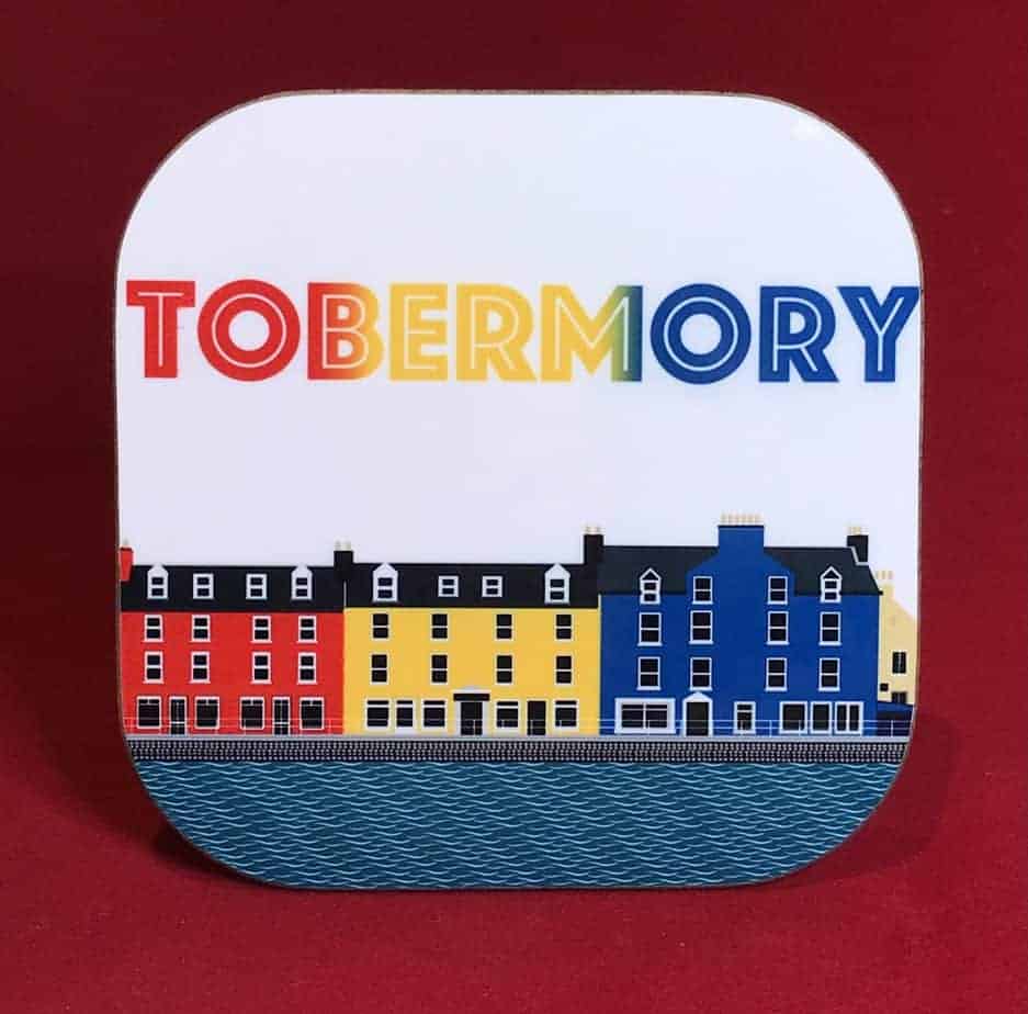 This colourful coaster features a design of the iconic coloured houses of Tobermory seafront.